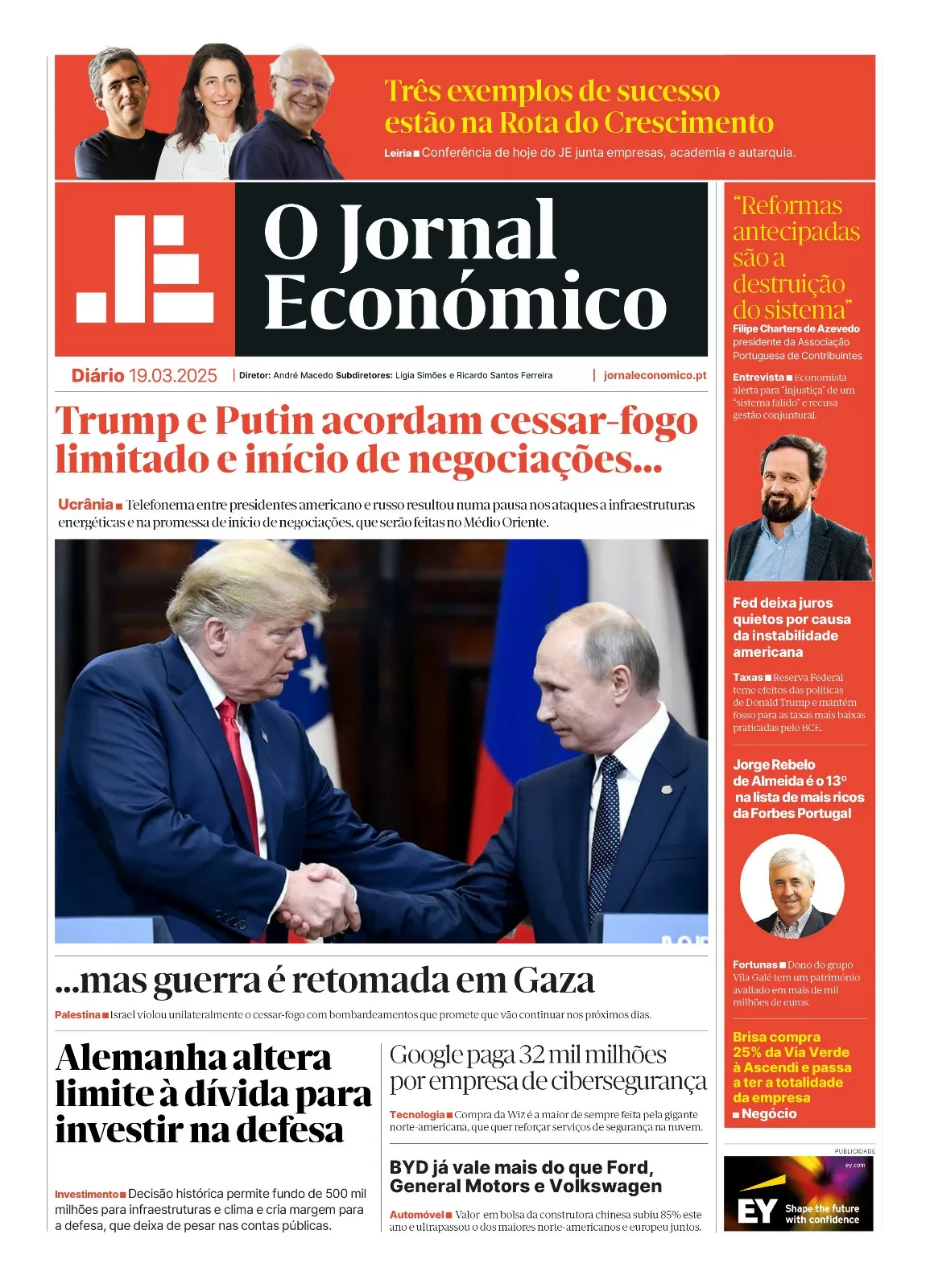 Início » A primeira página do Jornal Económico de 19 de março