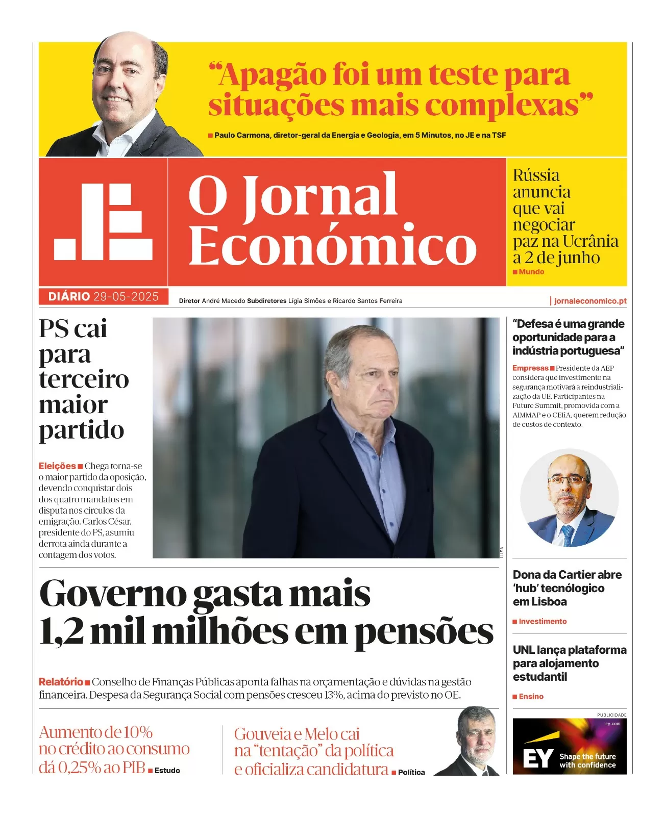 A primeira página do Jornal Económico de 29 de maio